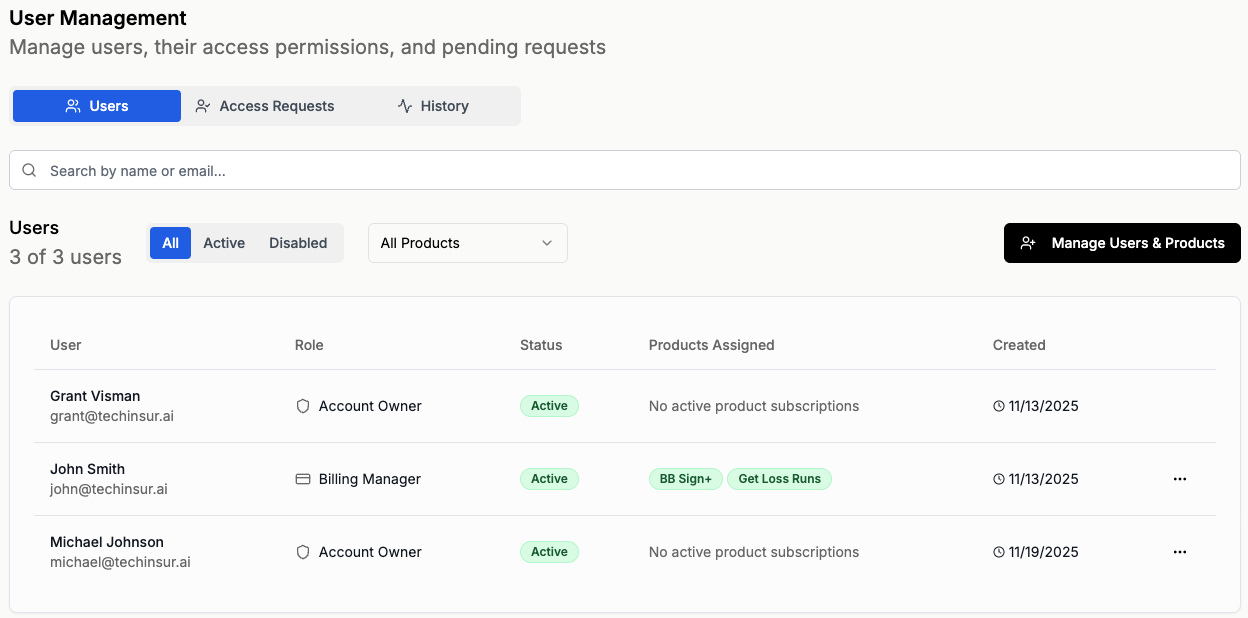 Billing Managers and Account Owners can disable a user from the Users settings.